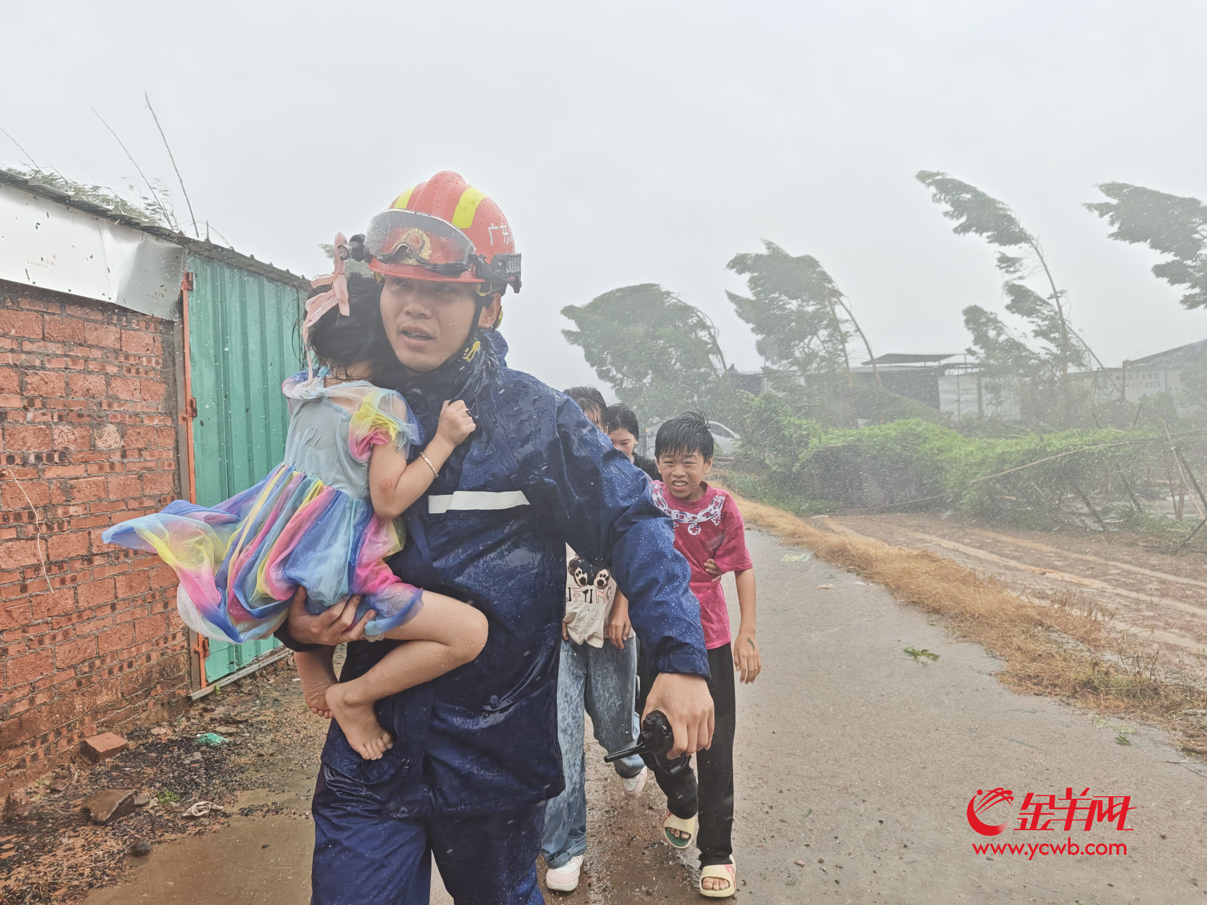抱幼童蹚水转移、冒暴雨护住老人安危、顶狂风清障开路……今年第21号台风“麦德姆”登陆广东湛江前后,一群“消防橙”化身风雨中的守护者,用一次次果断救援、一个个暖心举动,为群众筑起安全防线。