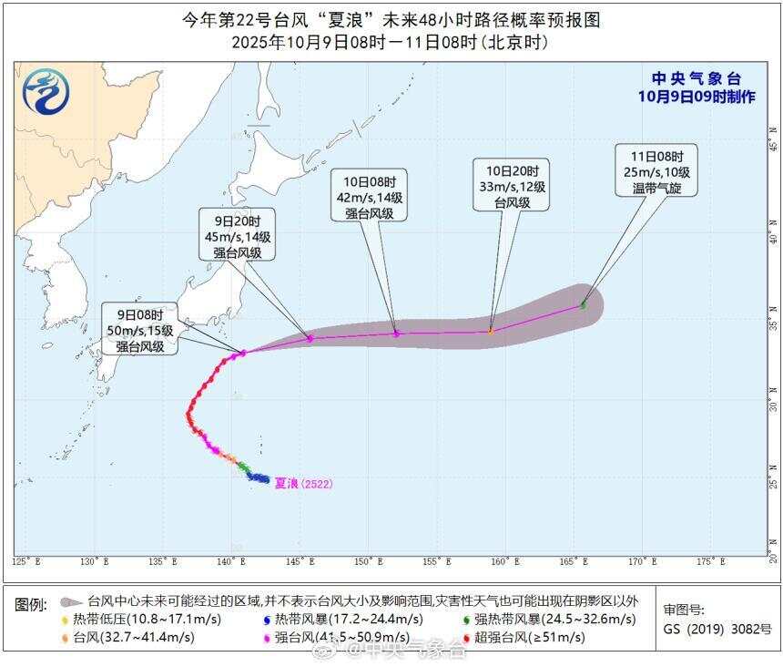 10月9日,今年第22号台风“夏浪”正在逼近日本伊豆群岛。中心附近的最大风速为每秒50米,最大瞬间风速达每秒70米。日本气象厅已向伊豆群岛的八丈町发布了特大暴雨警报。