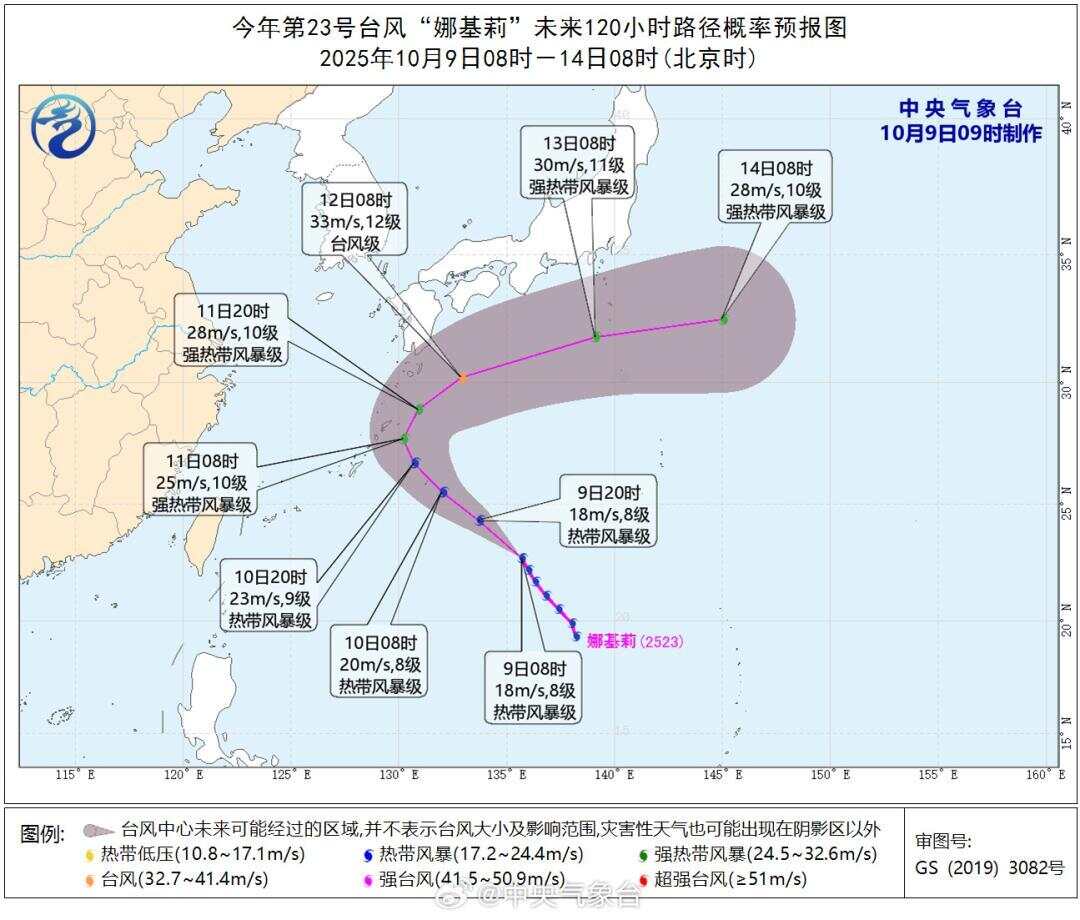 预计,“娜基莉”将以每小时20-25公里的速度向西北方向移动,强度缓慢增强。
