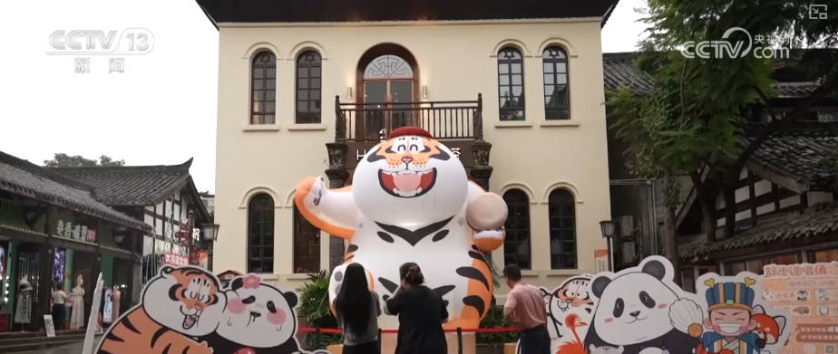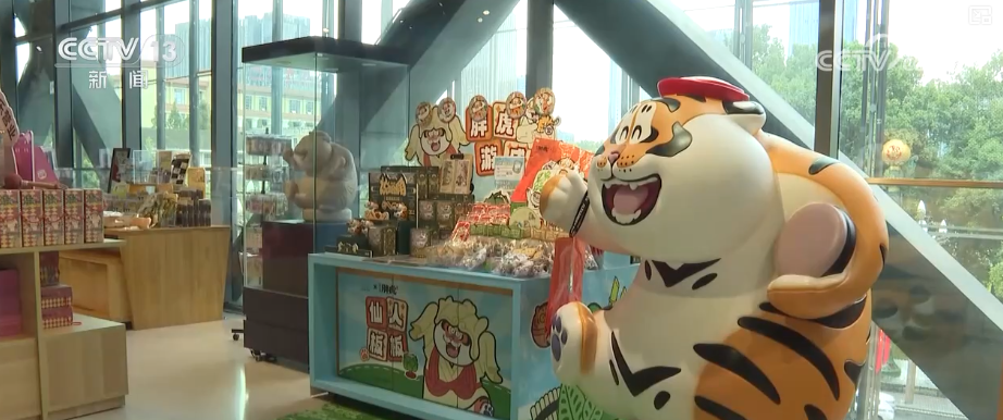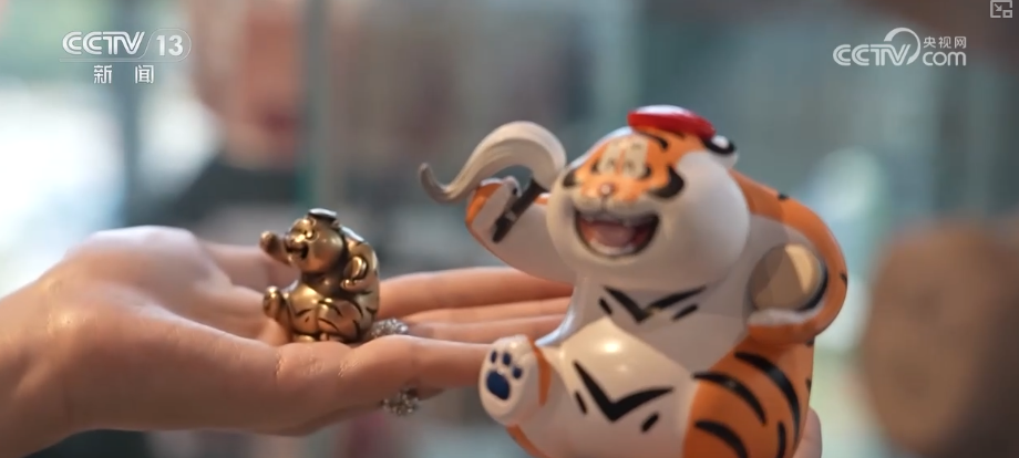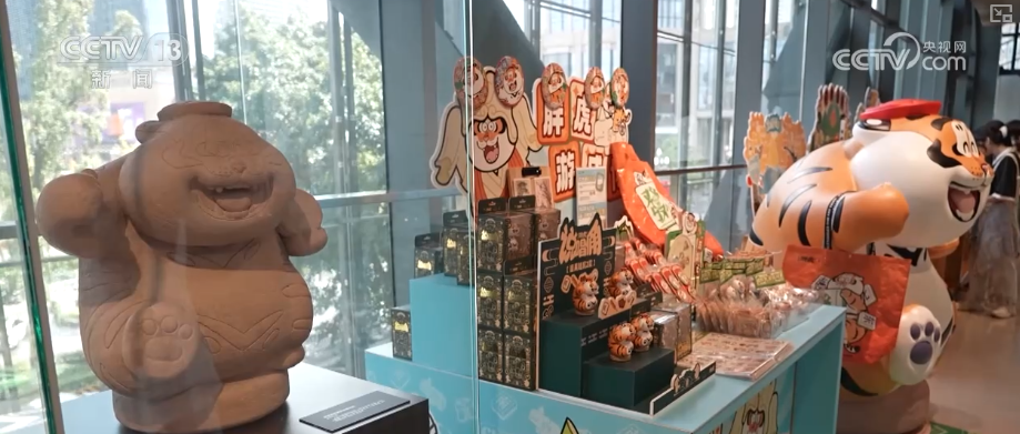 成都博物馆文化创意产业部工作人员伍娜介绍,在整个文创行业发展起来后,文博行业也进行了一些大胆的尝试,包括和一些艺术家、非遗的传承人,以及现在比较受年轻人欢迎的IP来进行一些跨界的合作。他们想了一个创意点,就是在“胖虎”的手上拿了很多具有成都代表性的元素,比如说茶馆文化就拿了茶壶。