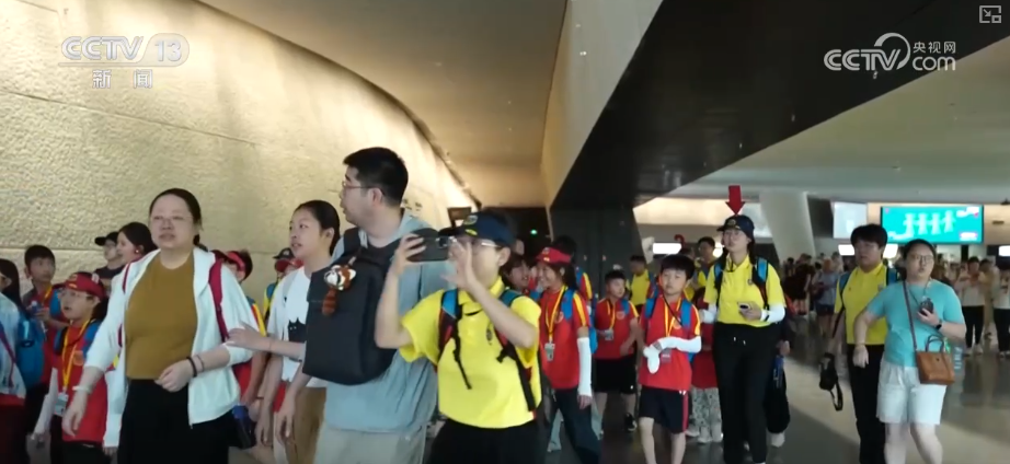 在三星堆博物馆新馆,新一轮考古发掘出土的文物吸引了来自全国各地的游客。在这里,不仅可以近距离感受精美绝伦的文物,还能在互动体验厅“穿越时空”,体验三星堆人的服饰、发式、冠式,感受中华文化的魅力。你也可以在XR体验区沉浸式感受神鸟形象,参与到古河道收集文物的互动体验中。