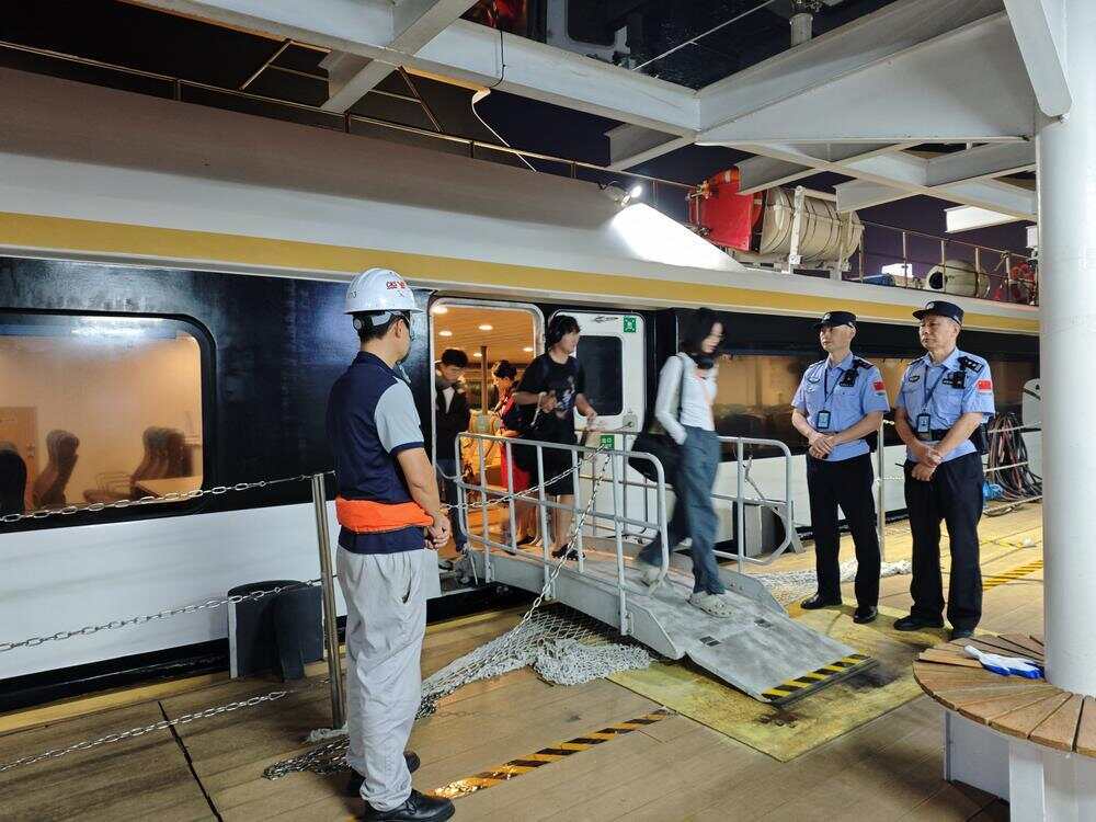 为保障夜航通关顺畅,洲头嘴边检站提前研判,制定“一船一策”通关方案,同步出台服务保障广交会专项工作实施方案。在口岸现场,边检部门开设广交会专用通道,还组建由英语、日语、韩语骨干民警组成的多语种服务队,在候检区设立咨询台,实时解答出入境通关政策问题;同时联合海关、口岸签证处、客运公司等部门建立 “信息互通、快速响应”联动机制,遇有旅客证件紧急问题或特殊需求,可启动协同处置流程,最大限度地减少通关等待时间。