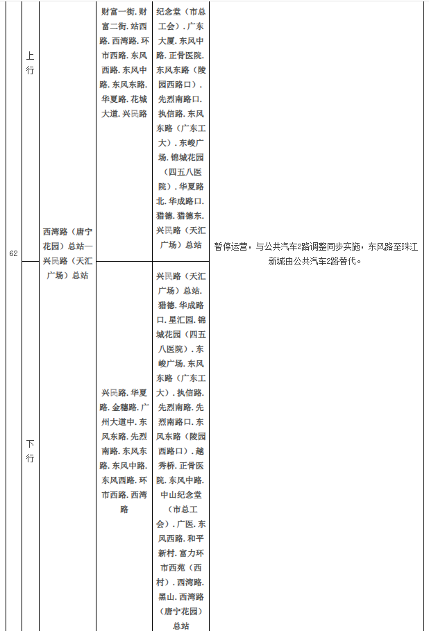 公共汽车62路同步暂停运营;