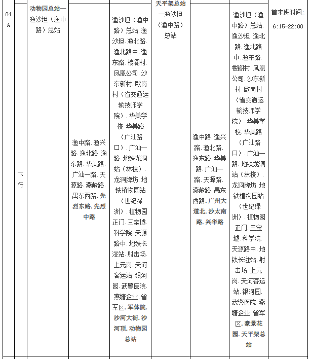 公共汽车84A路由动物园总站至渔沙坦(渔中路)总站调整为天平架总站至渔沙坦(渔中路)总站,