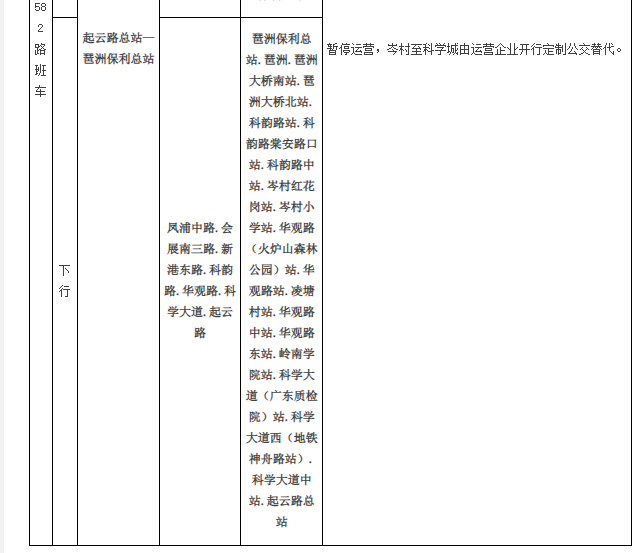 公共汽车582路班车同步暂停运营。