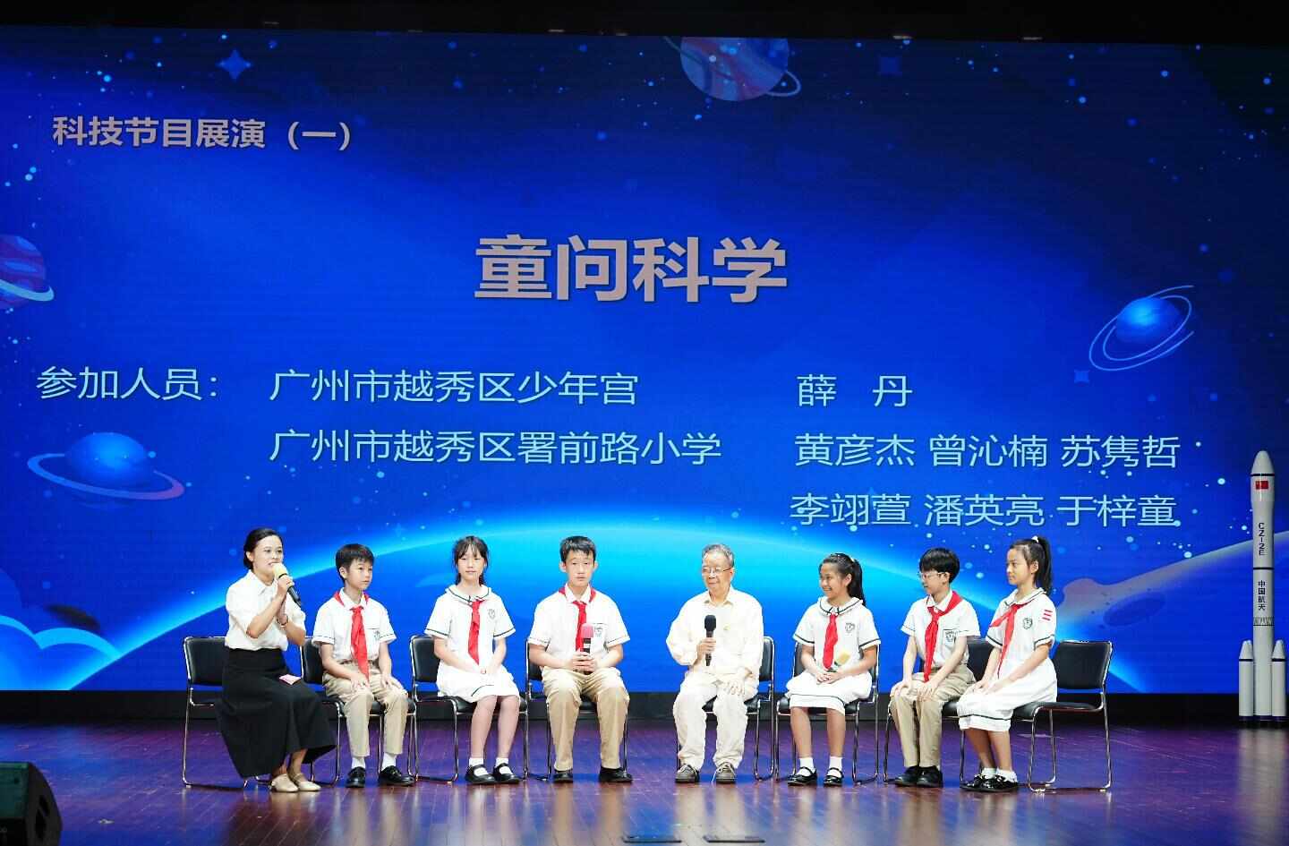 活动展演环节同样亮点纷呈,情景剧《数星星的孩子》作为压轴节目,不仅用精彩表演打动全场,更正式揭开越秀区少年宫“壹号天文馆”的神秘面纱。小演员们通过生动演绎,带领观众穿越时空,走进神秘的天文世界,展现历代中国天文人执着探索宇宙的精神,实现了科技与艺术的完美融合,也为这场科创盛会画上圆满句号。