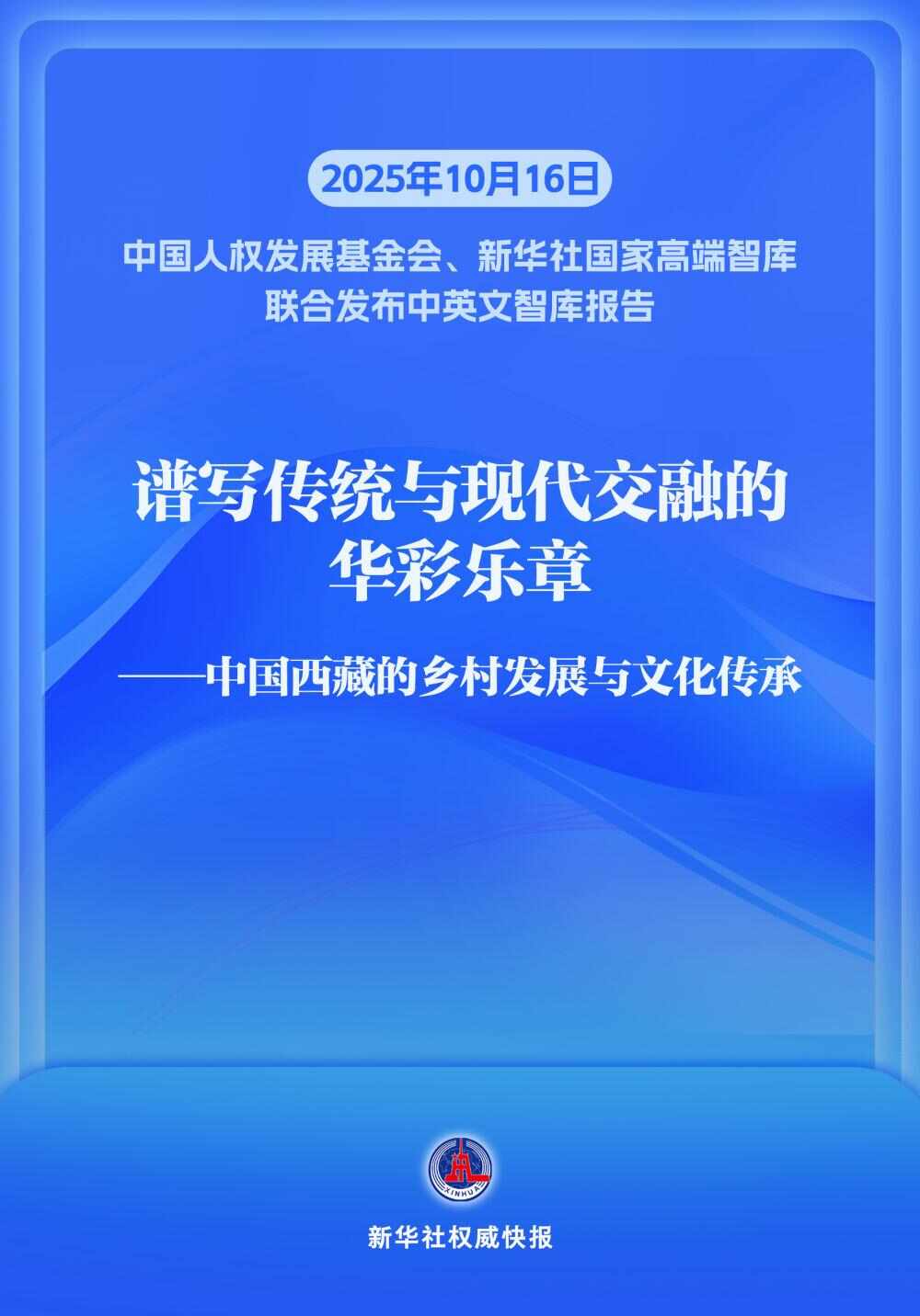 中国人权发展基金会、新华社国家高端智库10月16日在北京联合发布中英文智库报告《谱写传统与现代交融的华彩乐章——中国西藏的乡村发展与文化传承》。