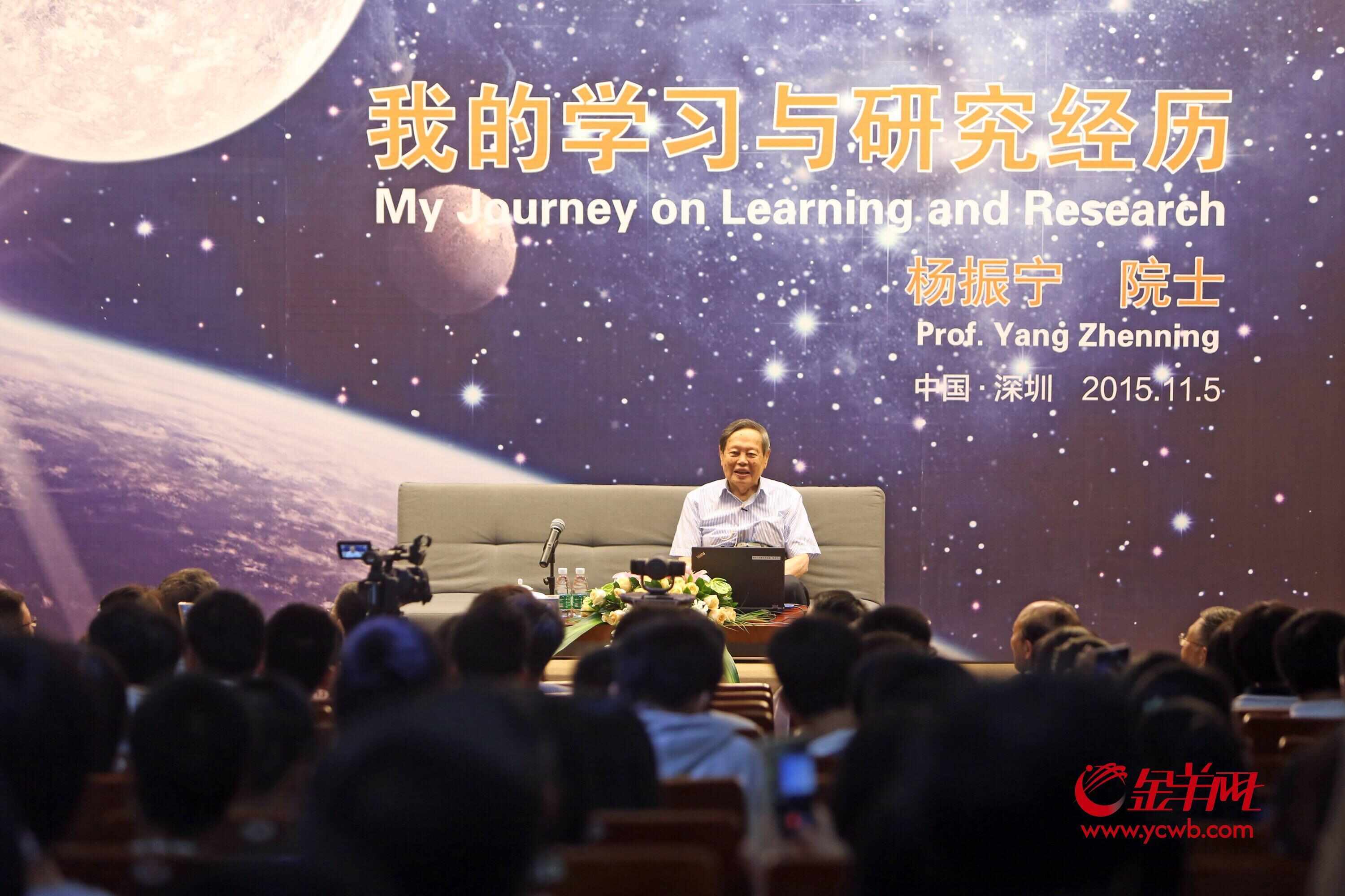 杨振宁先生生前曾多次在广东多地进行学术报告和演讲,分享学习与研究经历。羊城晚报记者曾多次在现场报道,记录下杨振宁与广东的不解之缘。
