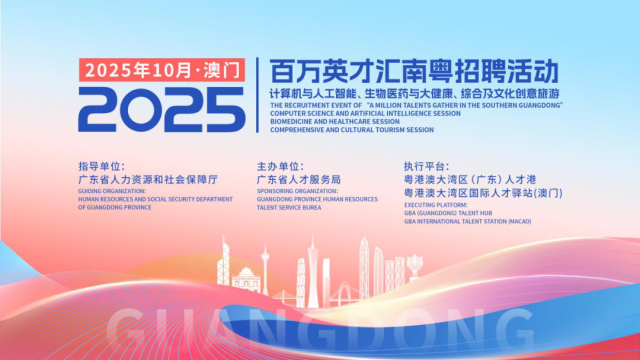 人社部以及粤港澳政府有关领导将出席并致辞,进一步凝聚部、省、港、澳四方共建人才高地、深化人才合作共识。