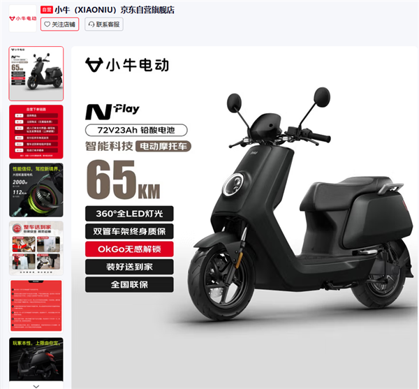 10月22日,小牛电动宣布其京东自营旗舰店正式上线,提供正品直供和全国联保服务。这一变化意味着消费者购买小牛电动产品后,将不再需要前往门店提车,而是可以享受京东物流直接将整车送到家的便捷服务。目前,小牛京东自营旗舰店仅提供一款车型——小牛NPlay电动摩托车,日常售价为4299元,补贴后价格为3998元。