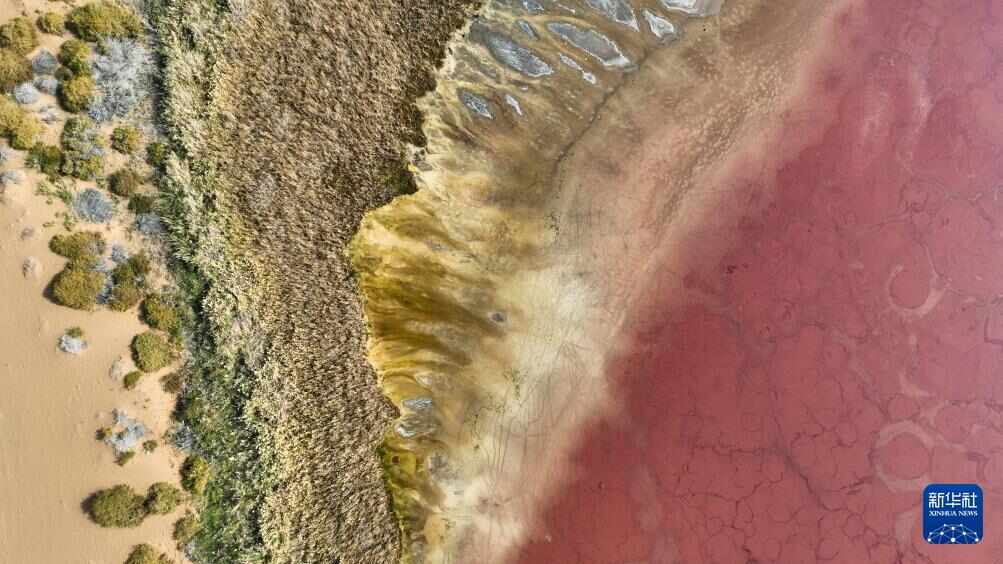 10月22日拍摄的巴丹吉林沙漠中的红海子(无人机照片)。