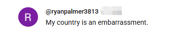 美国网友@ryanpalmer3813感慨道:“我的国家真让人尴尬……”