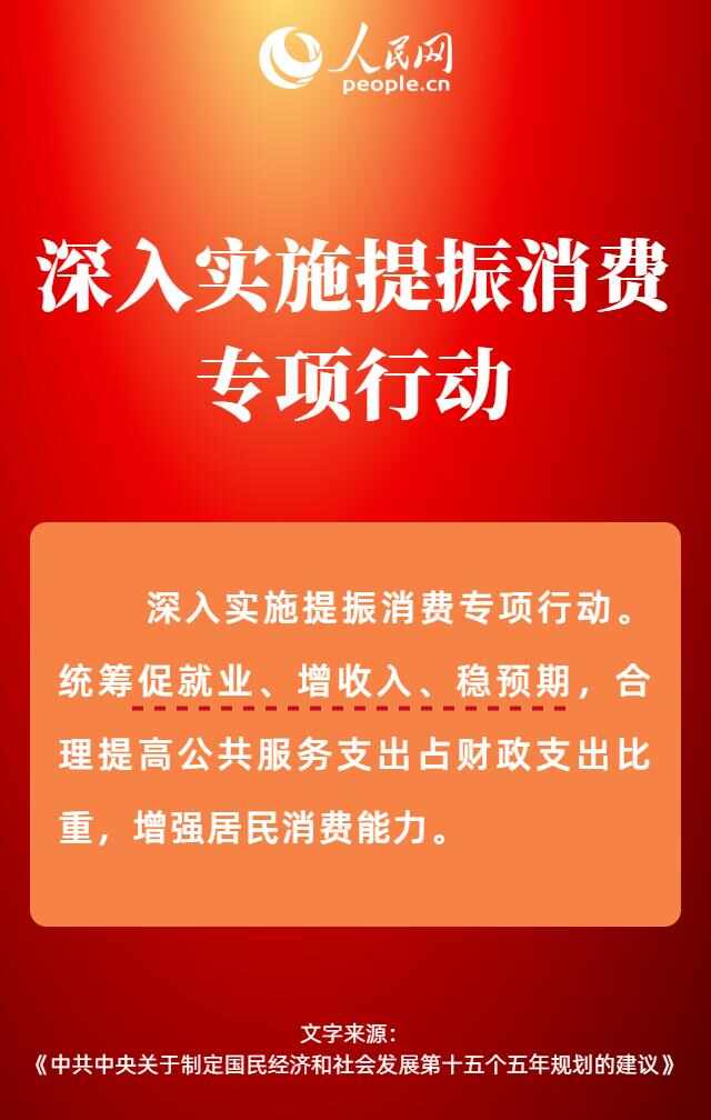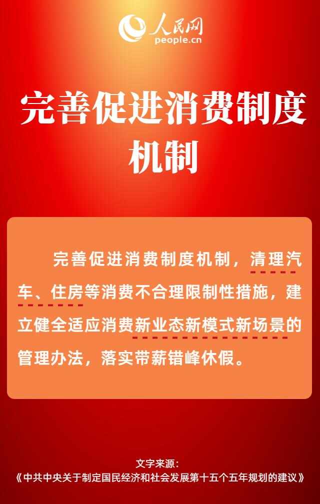 强大国内市场是中国式现代化的战略依托。《中共中央关于制定国民经济和社会发展第十五个五年规划的建议》提出,“以新需求引领新供给,以新供给创造新需求,促进消费和投资、供给和需求良性互动,增强国内大循环内生动力和可靠性。”透过几组关键词,看未来五年国内市场将迎来哪些发展新机遇。