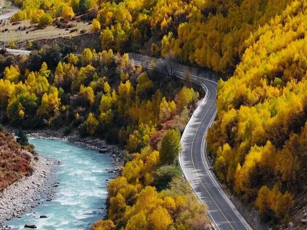 秋季这里是最佳拍摄点,金黄的杨树林、翠绿的青冈树和火红的枫叶交织成五彩画卷,无需任何滤镜就美得惊人。