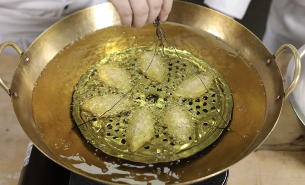 广式点心制作技艺(炸类点心)是形成、流传于广府地区,以粉或面、油、糖等材料,经油炸而制成酥、脆、鲜、香的油器类点心的传统技艺。其成品以香芋角、咸水角、萨其马、油条、牛脷酥等为代表,品种多样,咸甜皆有,酥脆香口。