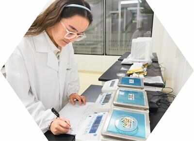 科研人员对种质资源进行考种、称取种子千粒重。