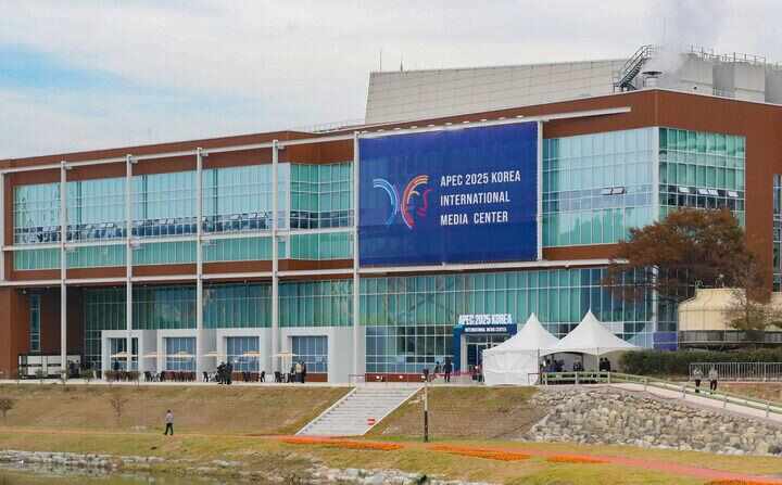 这是2025年10月31日在韩国庆州拍摄的亚太经合组织第三十二次领导人非正式会议新闻中心外景。新华社记者 姚琪琳 摄