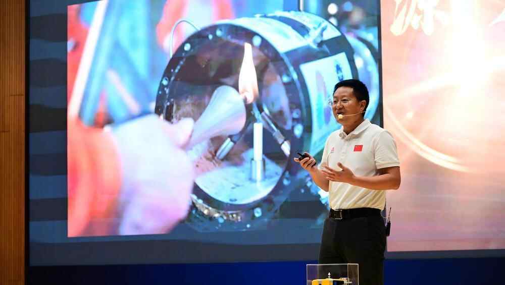 随后,科研人员利用安装在科考船甲板面的光伏发电装置,把太阳能转化为电能并传输到海底的耐压燃烧舱内,加热引燃气源获取“源火”,实现“引天之光、燃海之火”;