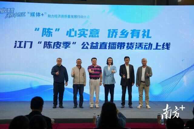 11月4日下午,江门市举行“冲刺四季度 决胜‘十四五’——‘媒体+’助力经济高质量发展行动大会”,同步启动“‘陈’心实意 侨乡有礼——江门‘陈皮季’公益直播带货活动”,以“媒体+特色农业+品牌消费”模式为地方经济注入新动能。