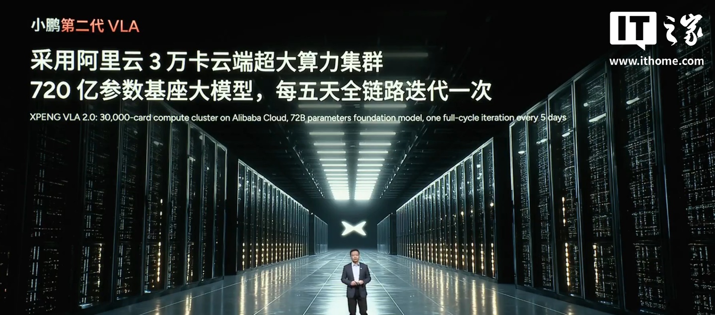 11月5日,小鹏汽车在2025小鹏科技日活动中宣布了第二代VLA(视觉语言动作模型)的正式公布。该模型采用了阿里云3万卡云端超大算力集群,基于720亿参数的大模型,每五天全链路迭代一次,预计明年规模将扩大到5~10万张卡。第二代VLA能够进行脑内推理,模拟不同行车场景的应对策略,并带来多项新功能,如“小路NGP”,复杂小路平均接管里程提升13倍,以及识别路人手势的“招手即停”功能,理解红绿灯逻辑等。