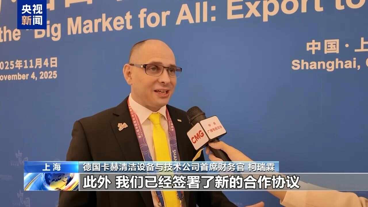 德国卡赫清洁设备与技术公司首席财务官 柯瑞霖:我们看到前往进博会的人越来越多,进博会涉及的领域也越来越广。现在我们可以直接从展台进行直播,向观众展示最新的产品。此外,我们已经签署了新的合作协议。我们可以在进博会上进行销售,并成功推广我们的品牌。