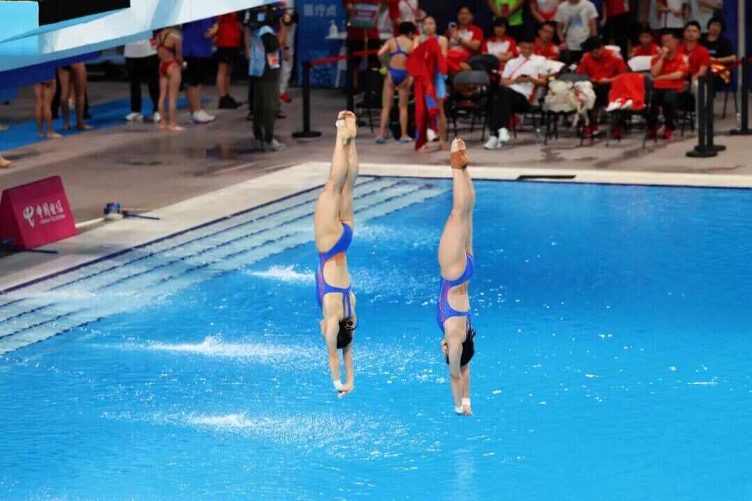 11月6日上午,全运会女子双人10米台预赛在奥体中心游泳馆打响。经过5轮的争夺,广东组合全红婵/王伟莹顺利跻身决赛。