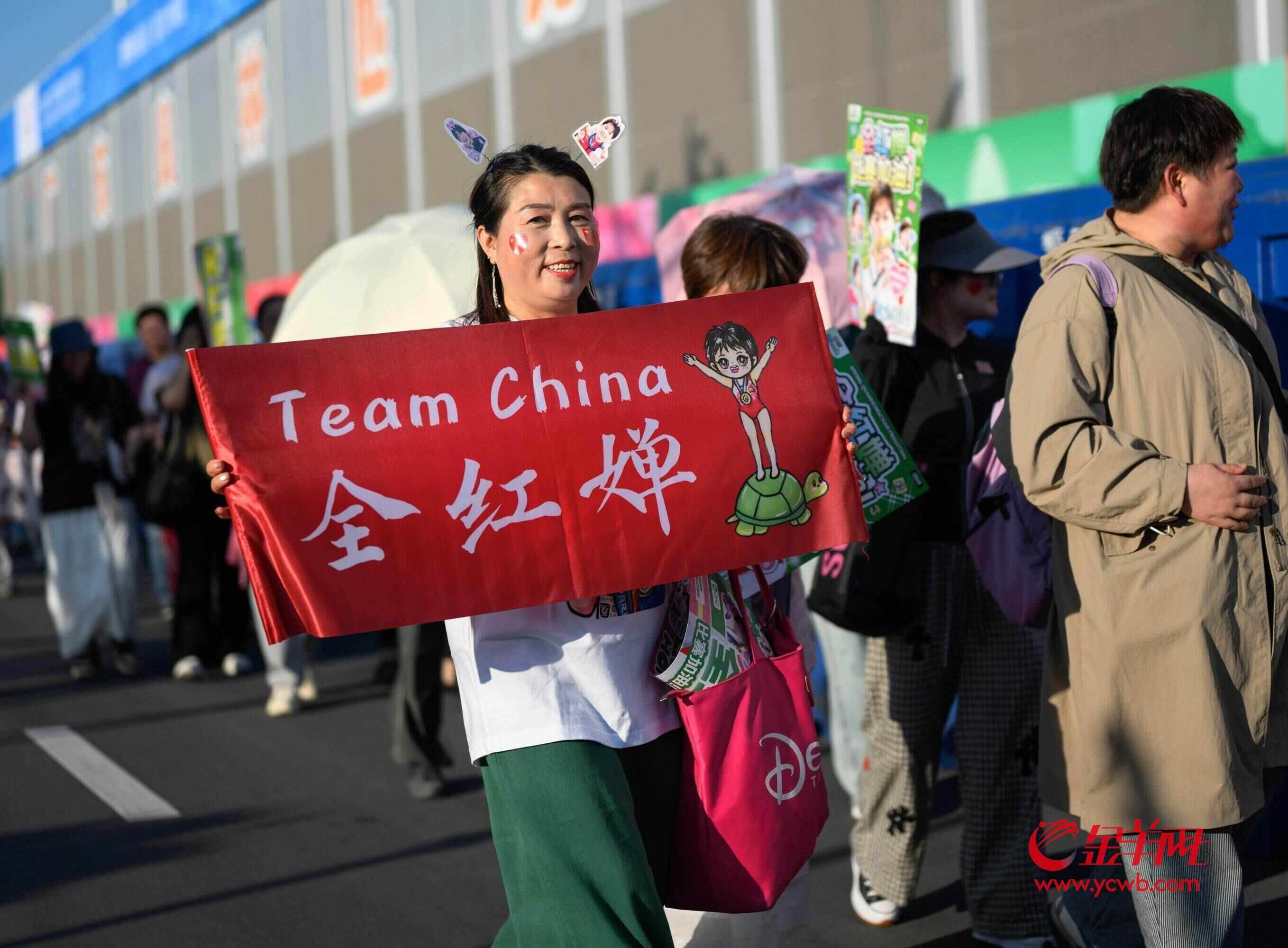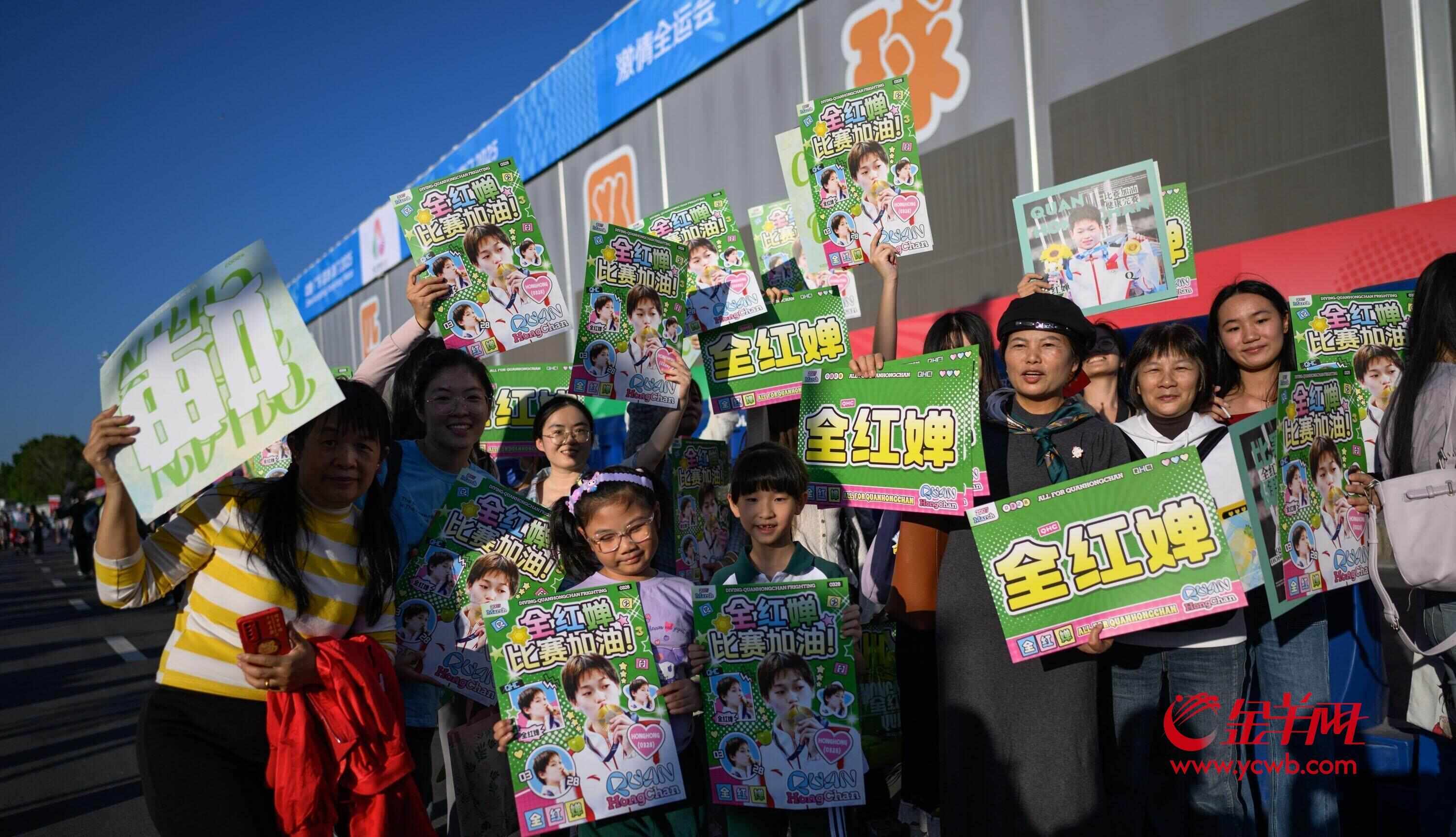 场馆之外,傍晚余晖未尽,安检口前已蜿蜒起有序的长龙。粉丝们手持各式应援,宛若流动的星火——有印着“全红婵”名字的横幅在暮色中轻扬,也有小朋友高举绘着她可爱头像的卡板,雀跃着等待入场。人群中,来自广州的李女士与线上粉丝群的十余位同伴相约而来,她语气激动:“从东京奥运会开始关注她,知道她这次伤愈复出,又是主场作战,我提前一周就守着抢票,只想亲口对她说一声‘加油’。”她顿了顿,目光温柔,“我们想让全红婵知道,她的身后不只有掌声,更有稳稳的陪伴与支持。”