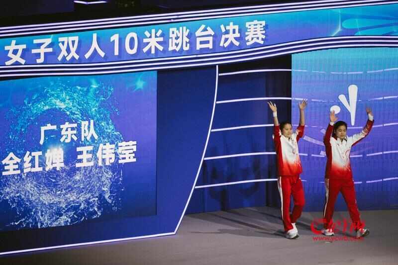 11月6日,十五运会跳水项目在广东奥体中心继续展开角逐,在晚上进行的女子双人10米台决赛中,上海队的陈芋汐/掌敏洁夺得金牌,四川队的李蕊汐/卢为赢得银牌,江苏队的刘军熙/孟泽瑞获得铜牌,代表广东队出战的全红婵/王伟莹获得第五名。