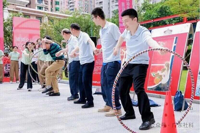 集体趣味运动会围绕“薪火相传”“湾区同心圆”“跳绳挑战”等团队项目展开。比赛采用团体积分制,强调团队合作与策略配合,充分体现了“趣味与竞技并重、健康与欢乐同行”的办赛理念。