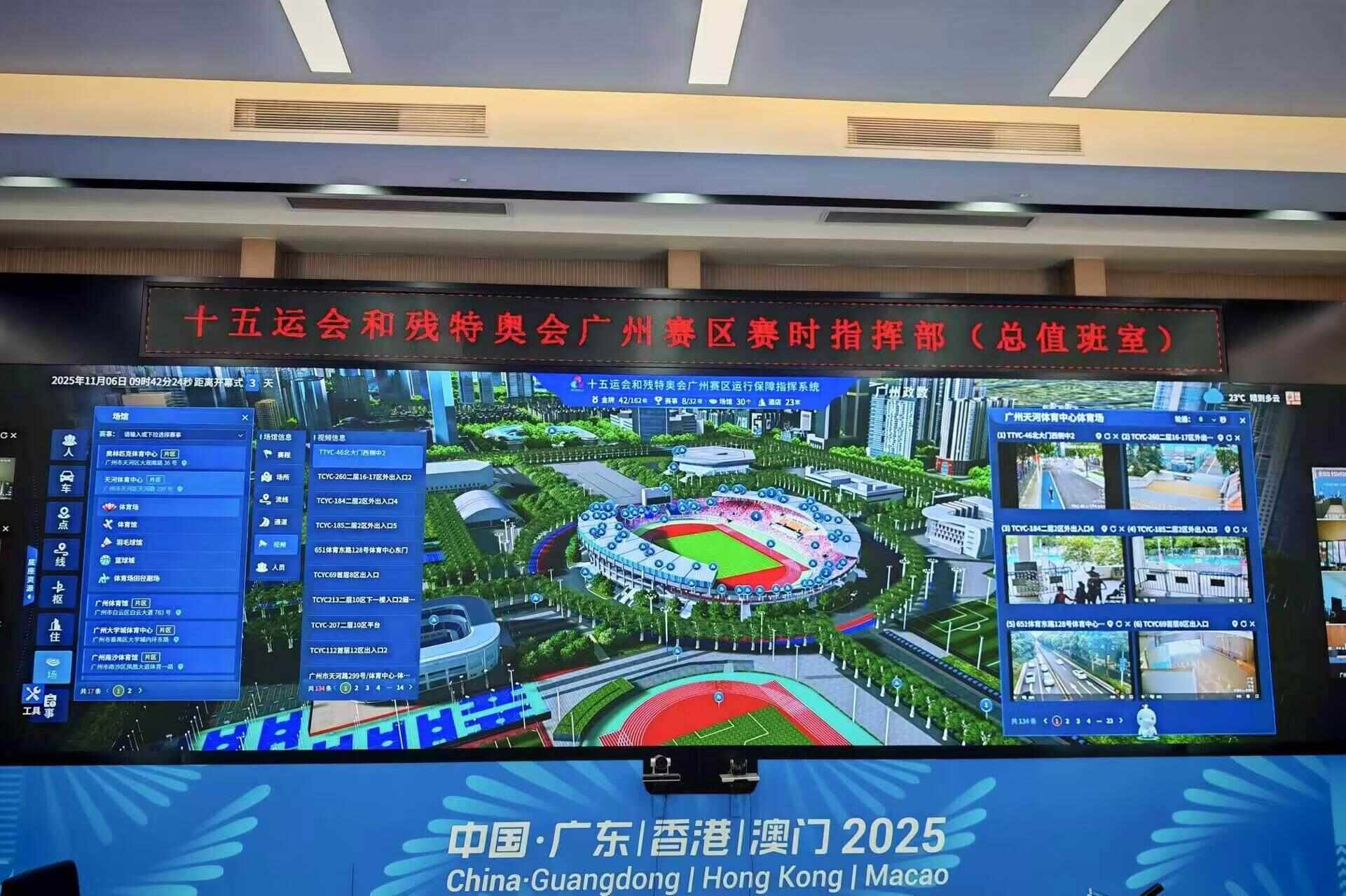 11月9日,第十五届全国运动会开幕式在广州举办。近6万名观众,10个远端集结点,95条保障路线……如何高效保障开幕式当天人员安全有序参加活动,并确保通信网络、交通运行等万无一失?近日,记者来到十五运会广州赛区MOC(即Main Operations Centre,主运行中心)赛事指挥部,了解“一个平台管全运”的实现路径。
