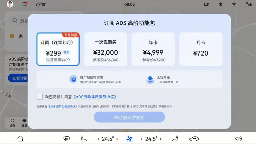 本次活动面向未购买“一次性购买”商品的ADS高阶功能包的高配车型用户,包括华为乾崑智驾ADS3的ADS Pro和华为乾崑智驾ADS 4用户。这意味着,对于符合条件的用户来说,他们可以在首月以较低的价格体验华为的高阶智能驾驶功能。