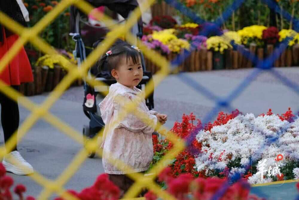 位于中心台的“彩色菊球”经过精心培育和布置,以饱满的花色和规整的球形构成视觉焦点。而“高放菊”则以1.8米的挺拔身姿,继续其与市民“比高”。