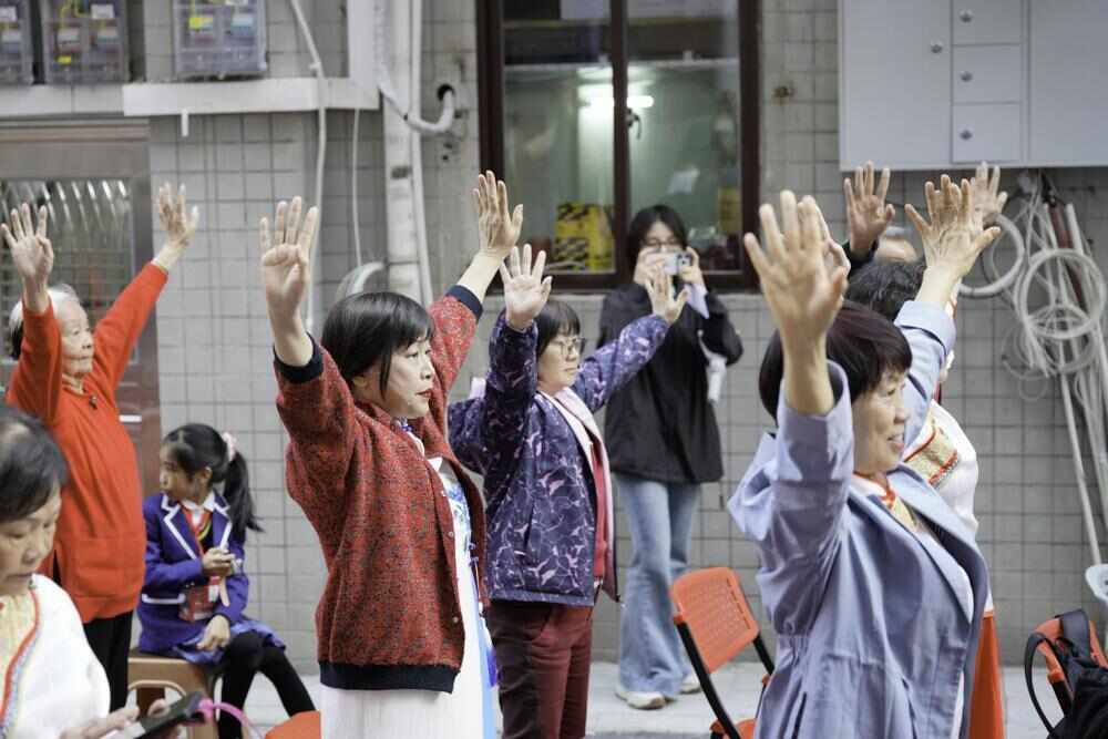 活动中,广东省中医院的医生正带领居民练习八段锦,“吸气、抬手、转身…… 动作放缓,跟着呼吸节奏来”,长者们跟着口令一招一式认真学习,既活动了筋骨,又掌握了日常养生技巧。