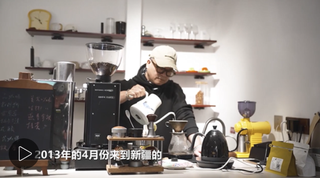 台湾云林的咖啡师赖纪戎2013年来到新疆,被当地咖啡市场的潜力吸引,从此扎根于此。他深深爱上新疆的独特魅力:夏日阴凉的舒适、冬季的皑皑白雪,以及烤羊肉串等特色美食。
