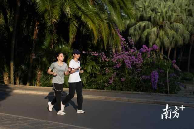 广西柳州,杨晓婷与引导员魏静进行跑步训练。