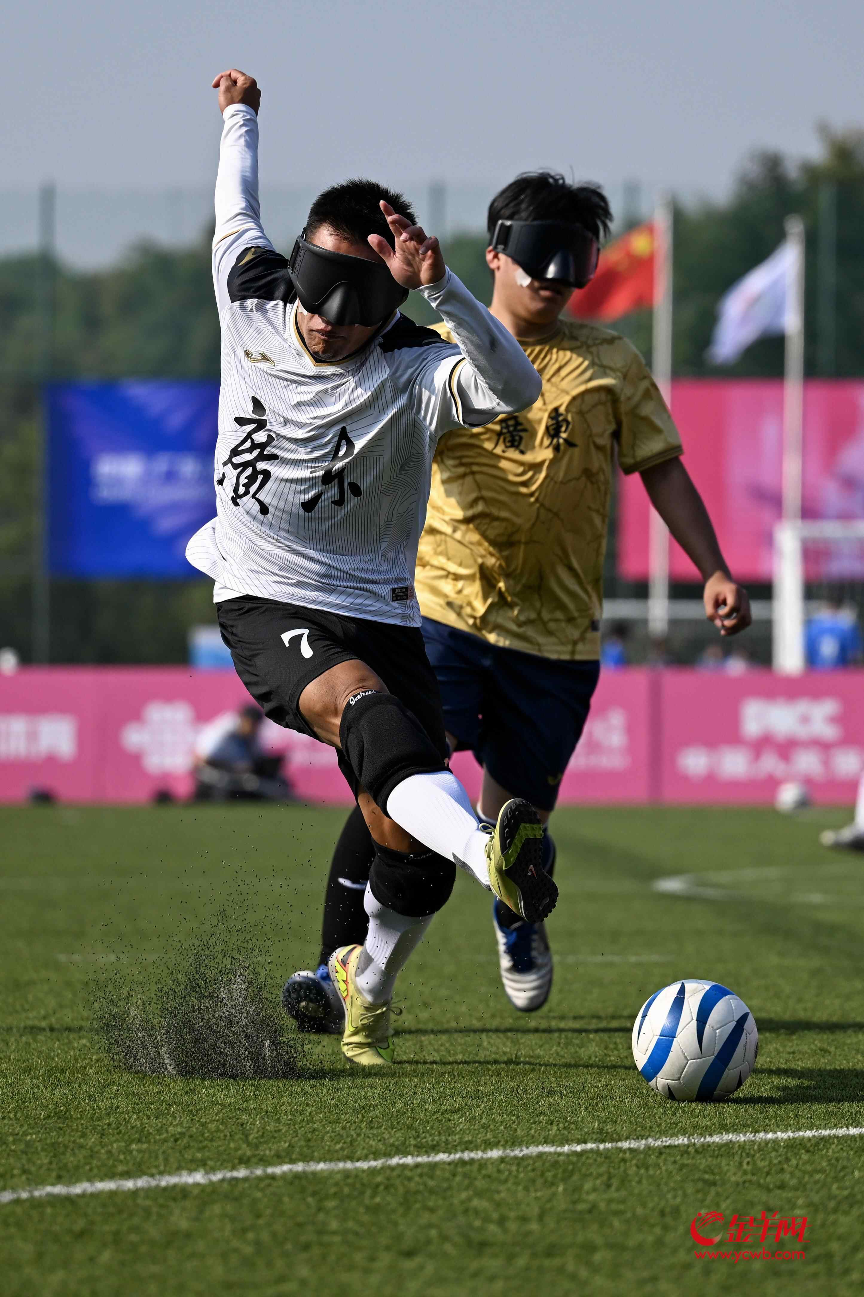 12月7日,2025年残特奥会盲人足球比赛在广州大学城足球场开赛。当天上午,盲人足球男子组小组赛率先开赛,广东队首发上阵比拼。
