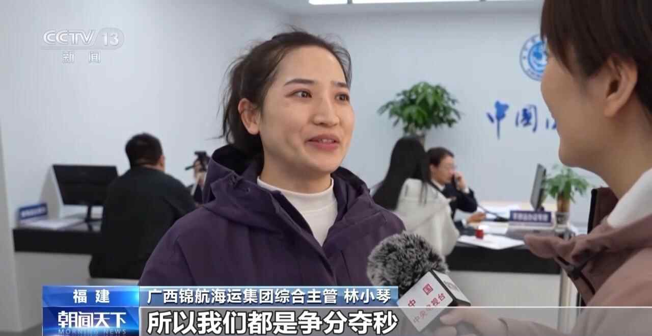 厦门海事局政务中心副主任 张杰:时效也是提升了非常多,把28天压缩到8天,然后现在甚至可以当天办结。2022年登记船舶注册载重吨是445万吨,现在已经达到了580万吨,增长了30%。可以说不停运办证给我们港口注入了新动能,吸引了更多的航运要素向我们厦门聚集。