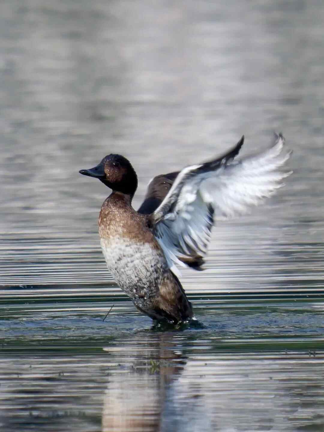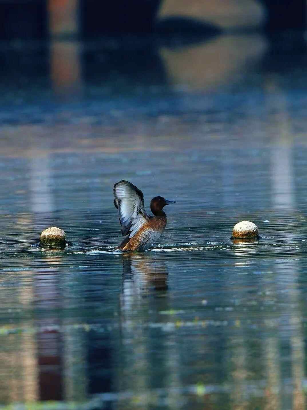 白眼潜鸭怯生,觅食活动多在清晨(6:30-8:30)和傍晚(16:30-18:00),早起前往观测成功率更高。