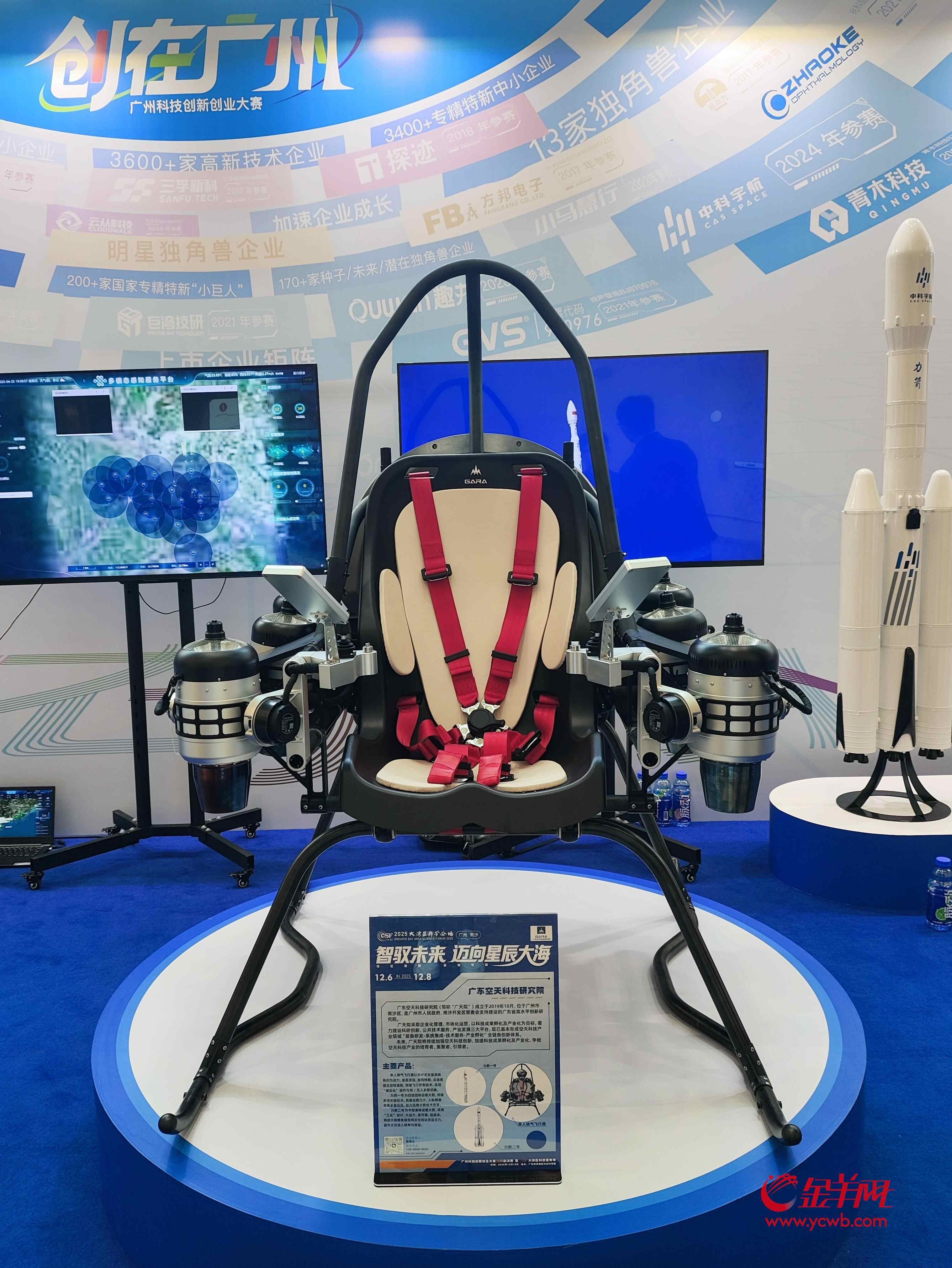 高校成果之外,科研机构与创新企业也展示了强劲实力。广东空天科技研究院推出的单人喷气飞行器,采用分布式矢量涡喷阵列作为动力,具有体积紧凑、响应灵敏、部署要求低等特点,可应用于特勤执法、紧急救援、飞行表演等载人任务。
