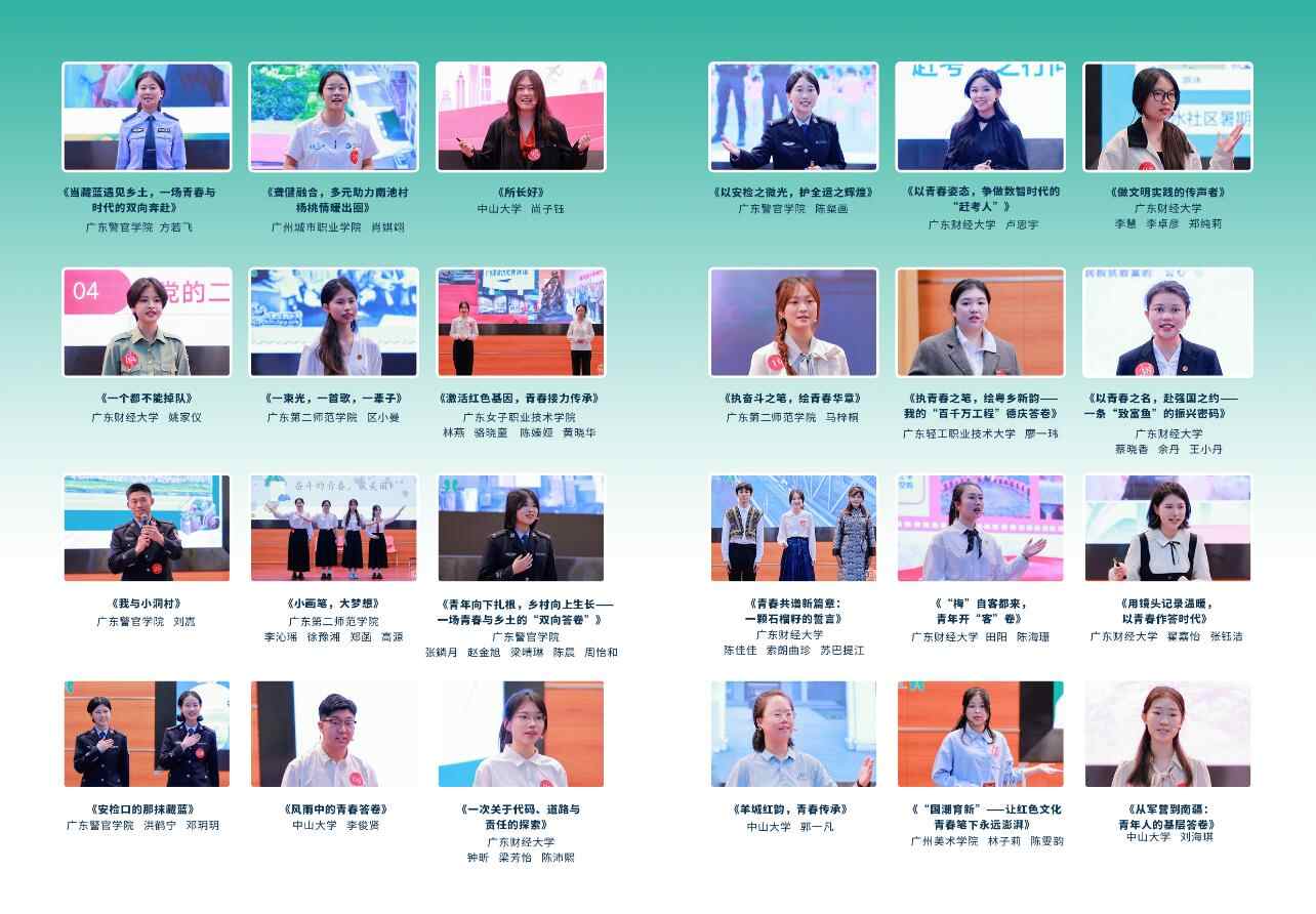 截至目前,共有来自辖内中山大学、广东财经大学、广东警官学院、广州美术学院等10所高校超百支队伍参赛,围绕“高质量发展”“科技创新”“文化传承”“共赴全运”及“基层治理”五大主题开展宣讲。