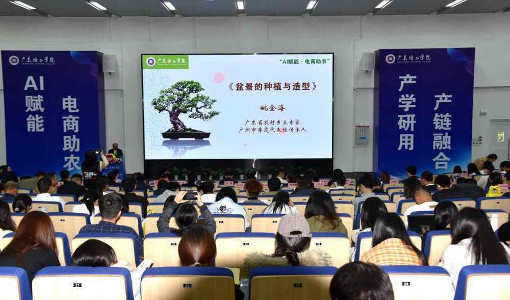 广东省农村乡土专家、广州市非遗代表性传承人姚金海,香港科技大学(广州)人工智能博士伍浩以及广东培正学院教师刘小苑紧扣以盆景产业为代表的农业发展痛点与需求,从文化传承到AI创新,从理论讲解到技能指导,以点带面勾勒出乡村振兴新蓝图。现场互动热烈,学员收获满满。