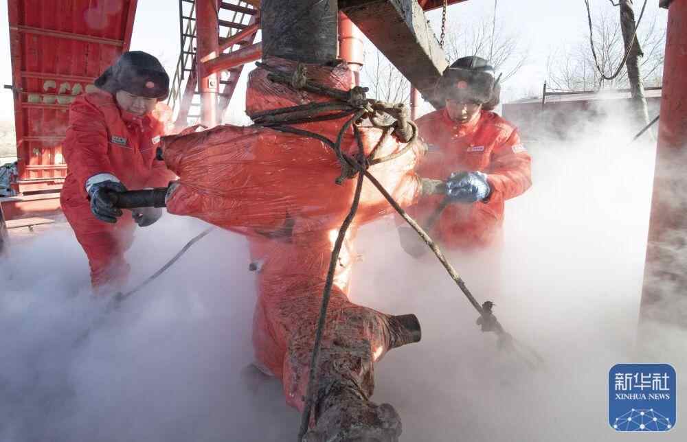 ↑ 12月11日,大庆油田井下作业员工在寒潮中坚持修井生产。新华社发(吴大勇摄)