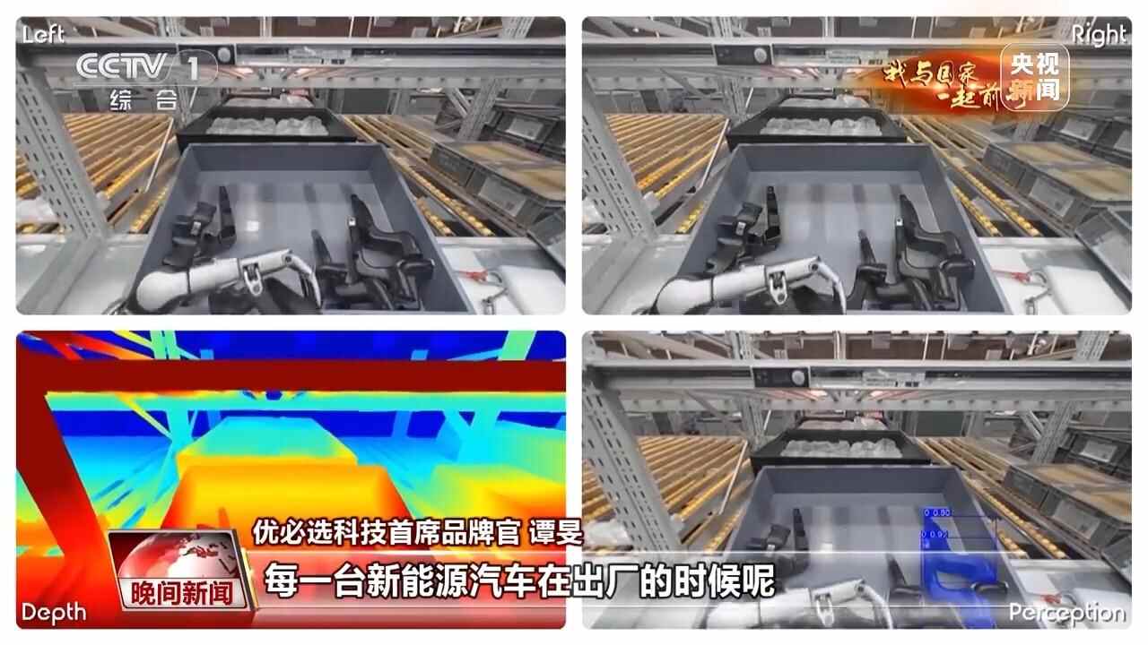 优必选科技首席品牌官 谭旻:机器人电量低于20%的时候,它就能够通过群体网络联网,找到工厂里面离它最近的一个充电桩,走过去进行三分钟之内的自主换电,从而实现24小时永不间断的新质生产力。