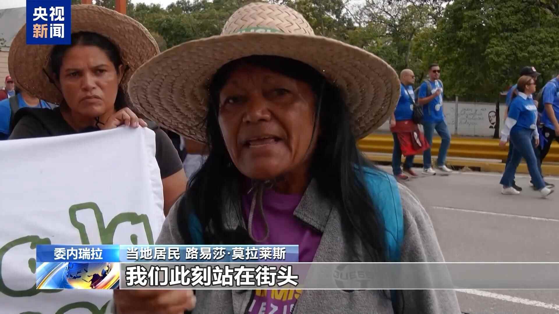 当地居民 路易莎·莫拉莱斯:我们此刻站在街头就是要告诉特朗普,你触碰了我们国家神圣不可侵犯的尊严。在亲眼看到总统归来之前,我们绝不会从街头撤离,我们要让总统回到自己的国家。