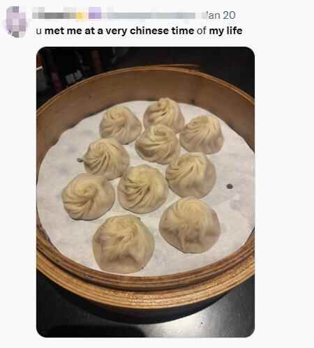 但就像所有抽象梗的走红一样,在接下来的几个月内,网友讯速解构了这句话,哪怕只是吃中国食物,也算是“在我非常中国化的时期遇到我”了。