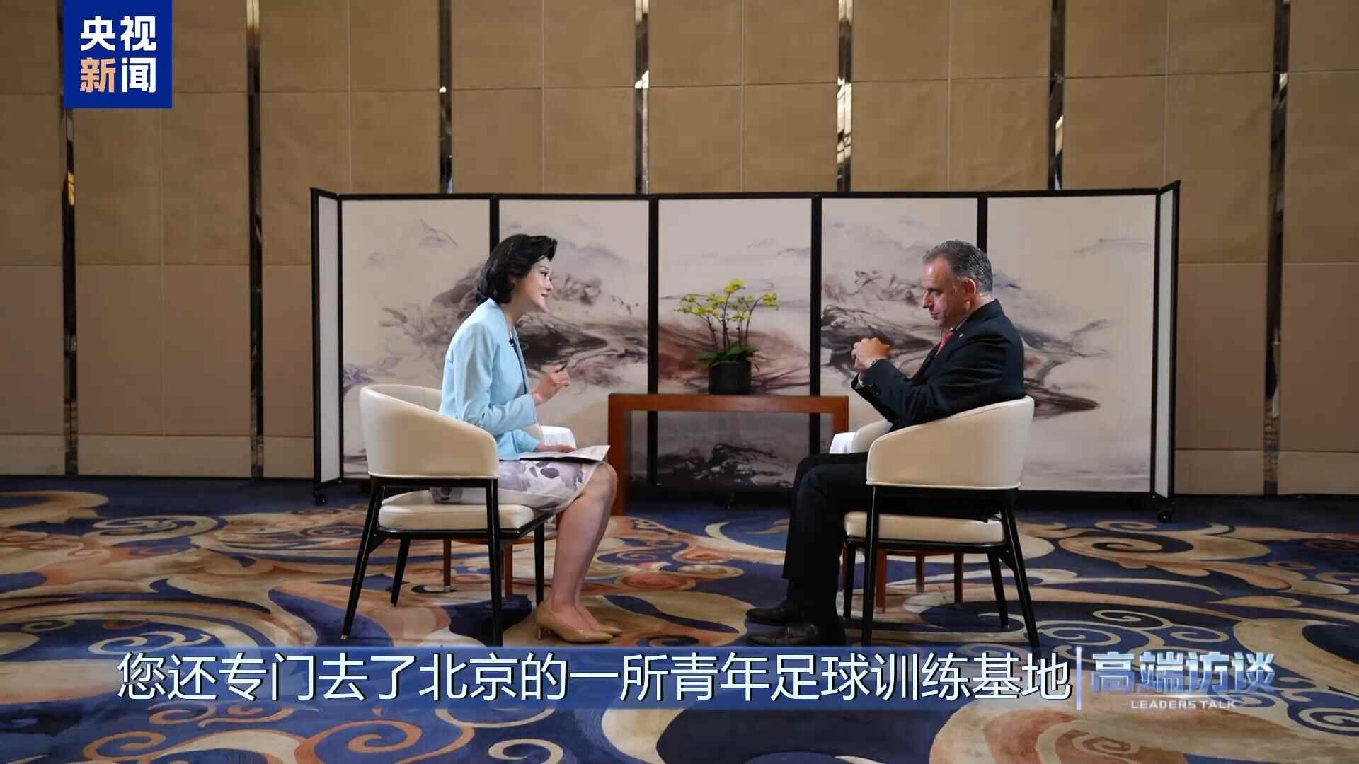 总台记者 邹韵:我们知道,乌拉圭是全球足坛的传统强国,2次夺得世界杯,15次捧起美洲杯。这一次在您访华期间,您还专门去了北京的一所青年足球训练基地。您在那与小球员们有一些有趣的互动,看起来像专业的球员一样。您期待两国在足球领域未来有着什么样合作的火花呢?