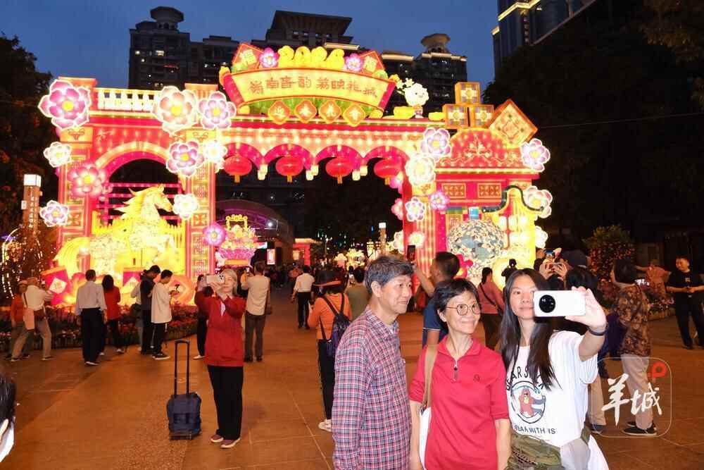 今年灯会重头戏是正门门楼《福马迎春》,融合骑楼拱券、趟栊门、满洲窗、广彩花瓶等广府元素,骏马昂首跃起呼应农历马年,寓意马上“橙”功、马上有“福”,灯组巧妙结合园区水景林木,营造“火树银花不夜天,流光溢彩映春色”的诗意画卷。