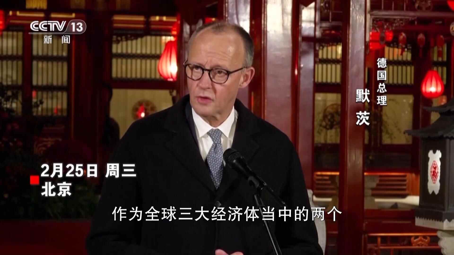德国总理 默茨:作为全球三大经济体当中的两个,我们之间的贸易往来不光为我们自己,也为更广阔的世界带来了巨大动力。我此访也清楚表明,这里蕴含着巨大的潜力。